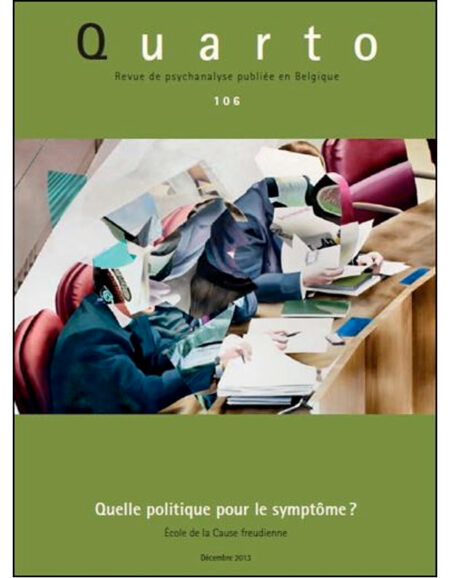 Quarto, revue de l’ECF, s’inscrit dans le paysage des revues de l’Ecole de la Cause freudienne, à côté de La Cause freudienne. Quarto a son point d’ancrage en Belgique. Cet ancrage a son histoire, celle du mouvement analytique en Belgique.