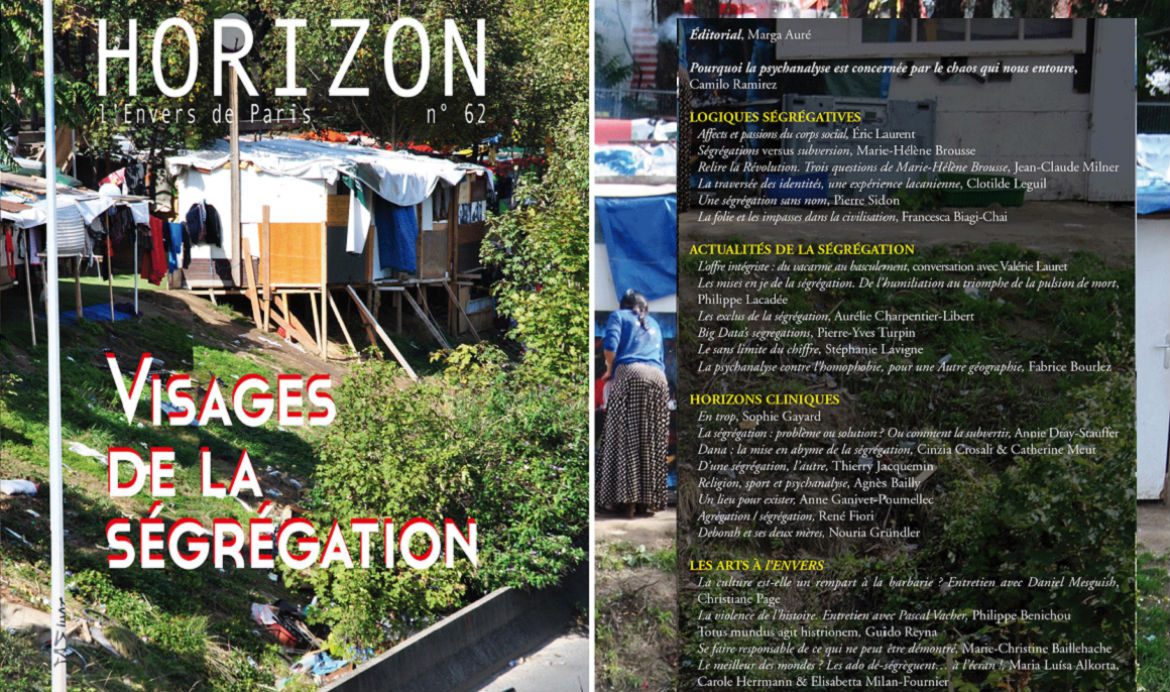Tout ne peut être dit, tout ne peut être présenté en quelques lignes, sur ce numéro d’Horizon qui est un numéro d’exception. Il nous plonge dans l’actualité de notre époque, attrapant le réel de ce qui fait de la ségrégation une manifestation propre au sujet de l’inconscient qui se diffracte sur les différents visages qu’elle prend dans notre monde. Lisez-le. Non seulement vous serez touchés par les situations de ces sujets rejetés, mais vous en saurez un peu plus sur la façon dont les mécanismes de la ségrégation démontrent que « l’évaporation du père » dont parle Lacan n’est pas sans conséquence sur les corps détachés de leur Autre méchant, le fuyant, le rejetant aussi bien puisqu’il faut survivre à la grave maladie de la haine et du rejet.